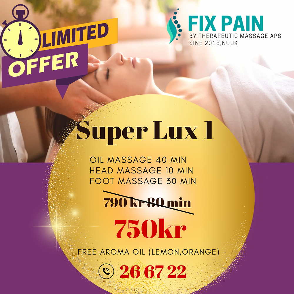 890 Danish kronerBody Massage 40 min ,Head Massage 20 min ,Foot massage 30min